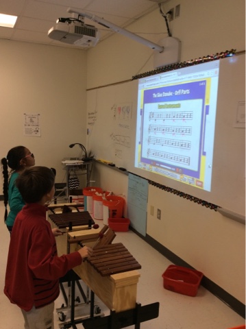 2nd graders reading and performing rhythms in a meter of 3. We've learned that the meter of 3 is used in a Waltz. We listened to "The Blue Danube" waltz by Johann Strauss and found the Blue Danube river on our map.